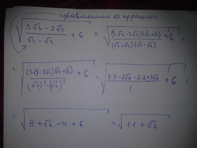 Вы зашли на страницу вопроса Упростите выражение 3 корня из 3 минус 2 корня из 2 / ?, который относится к категории Алгебра. По уровню сложности вопрос соответствует учебной программе для учащихся 5 - 9 классов. В этой же категории вы найдете ответ и на другие, похожие вопросы по теме, найти который можно с помощью автоматической системы «умный поиск». Интересную информацию можно найти в комментариях-ответах пользователей, с которыми есть обратная связь для обсуждения темы. Если предложенные варианты ответов не удовлетворяют, создайте свой вариант запроса в верхней строке.