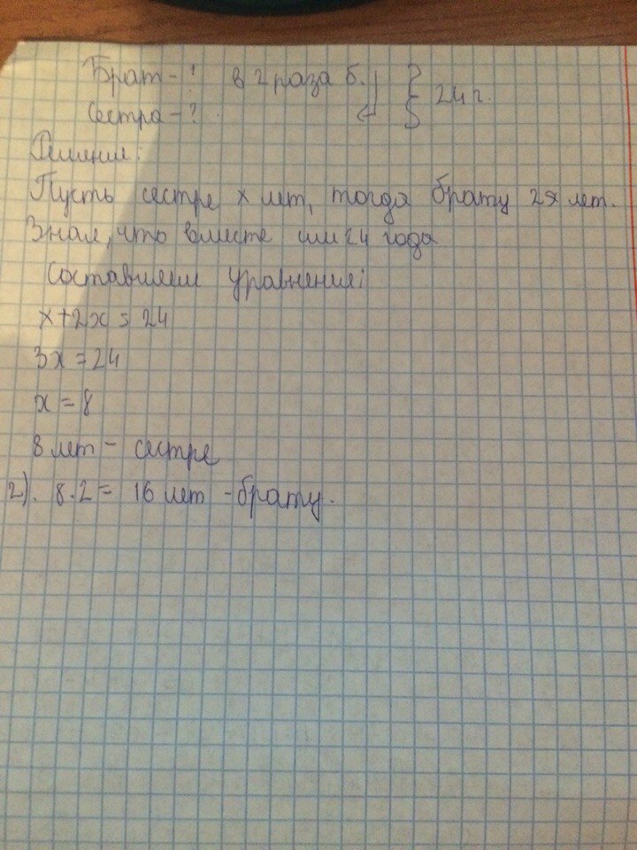 Решить задачу с помощью уравнения : Брат в 2 раза старше сестры.