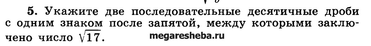 1) смотрим на подкоренное выражение там 17 вспоминаем что близжайшее число это 16 корень из 16 равен 4, но раз корень из 17 больше то будет первое число 4, 1 а второе число это 4, 2 2) корень находиться в знаменателе, значит знаменатель не равен 0, и подкоренное выражение больше нуля, значит а≥0 и не а≠ 16.