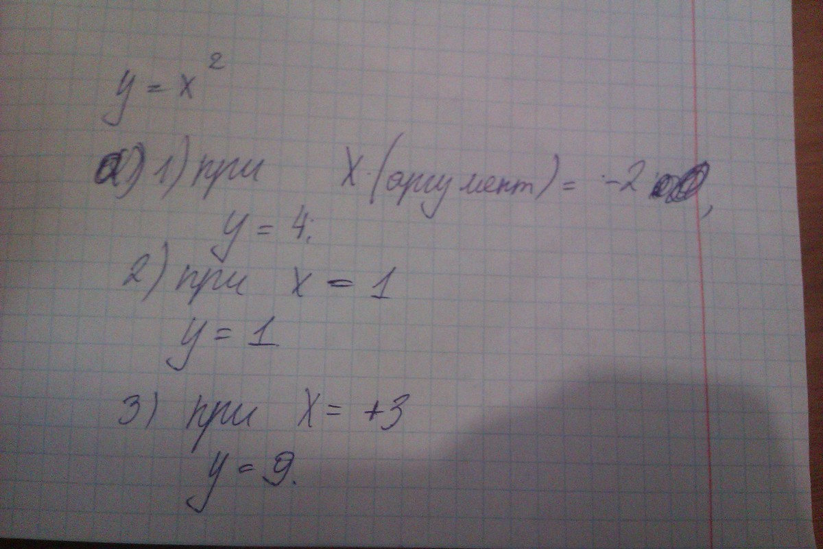 Постройте график функции у = х ^ 2 с помощью графика найдите а) значение функции при значении аргумента - 2, 1, 3.