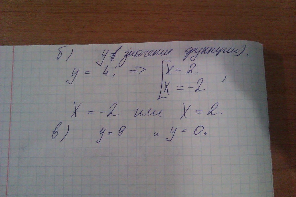 Постройте график функции y = x ^ 2С помощью графика найдите :а) Значения функции при значении аргумента, равном - 3 ; - 1 ; 2б) значения аргумента, если значение функции равно - 9в) Наибольшее и наиме?