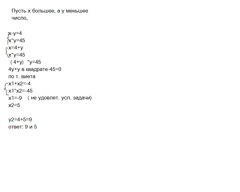 Одно из двух натуральных чисел на 4 больше другого, а их произведение равно 45.