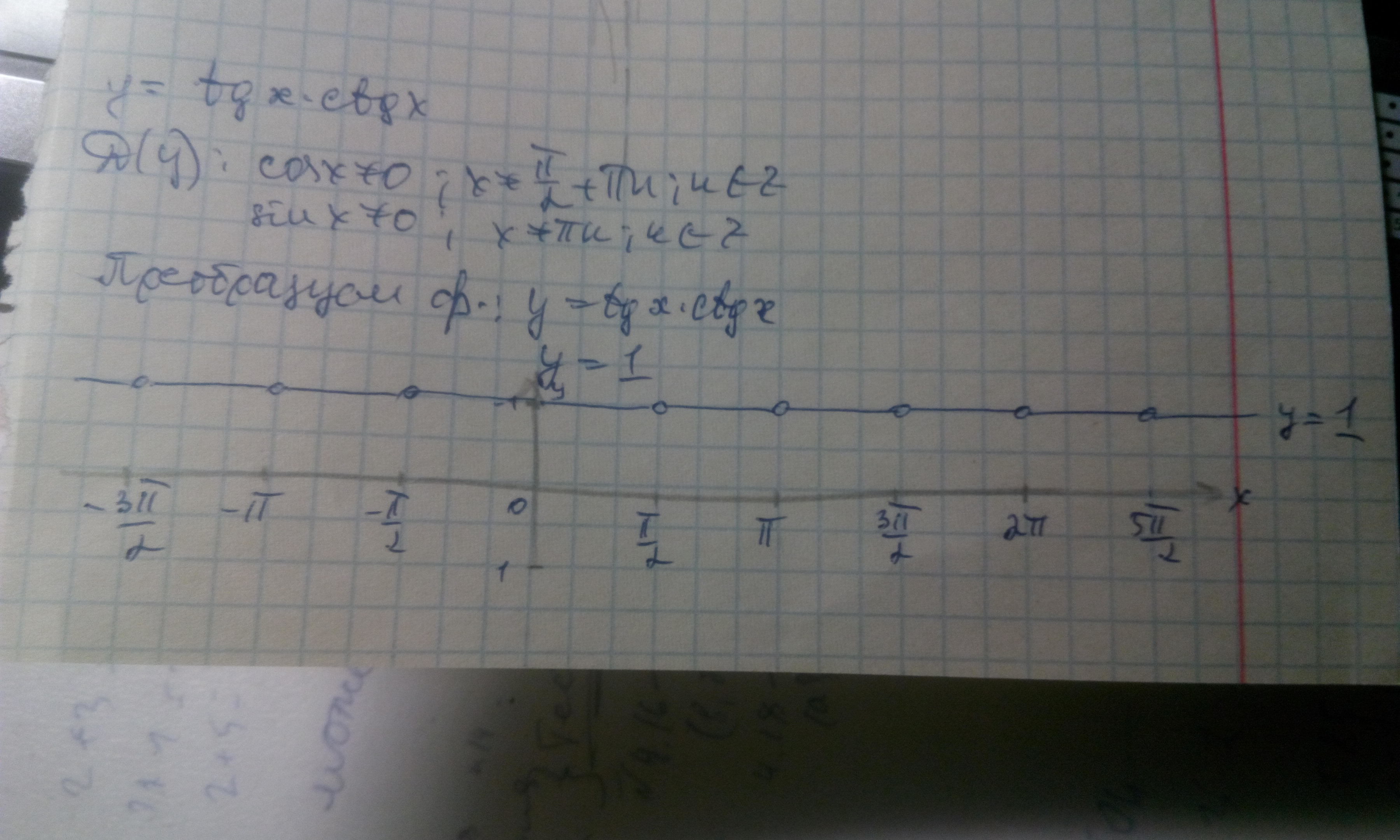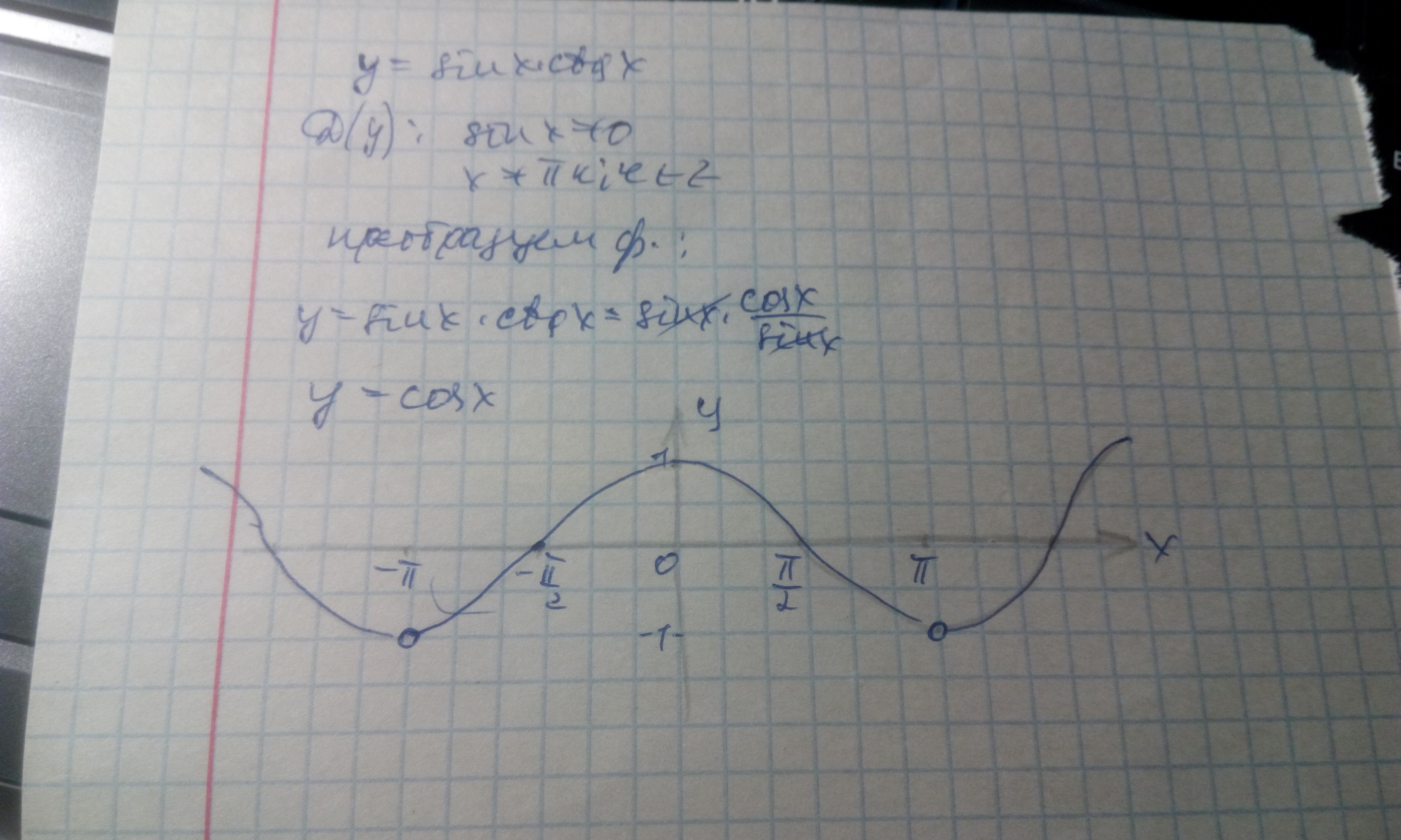 Помогите, пожалуйста : постройте график функции 1) y = tgx * ctgx 2) y = sinx * ctgx Пояснения приветствуются.