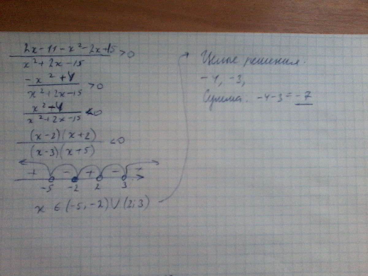 найти сумму целых решений неравенства.