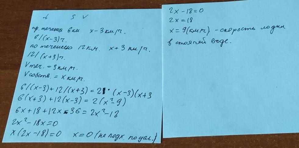 Найдите скорость течения реки , если скорость лодки в стоячей воде 9км / ч.