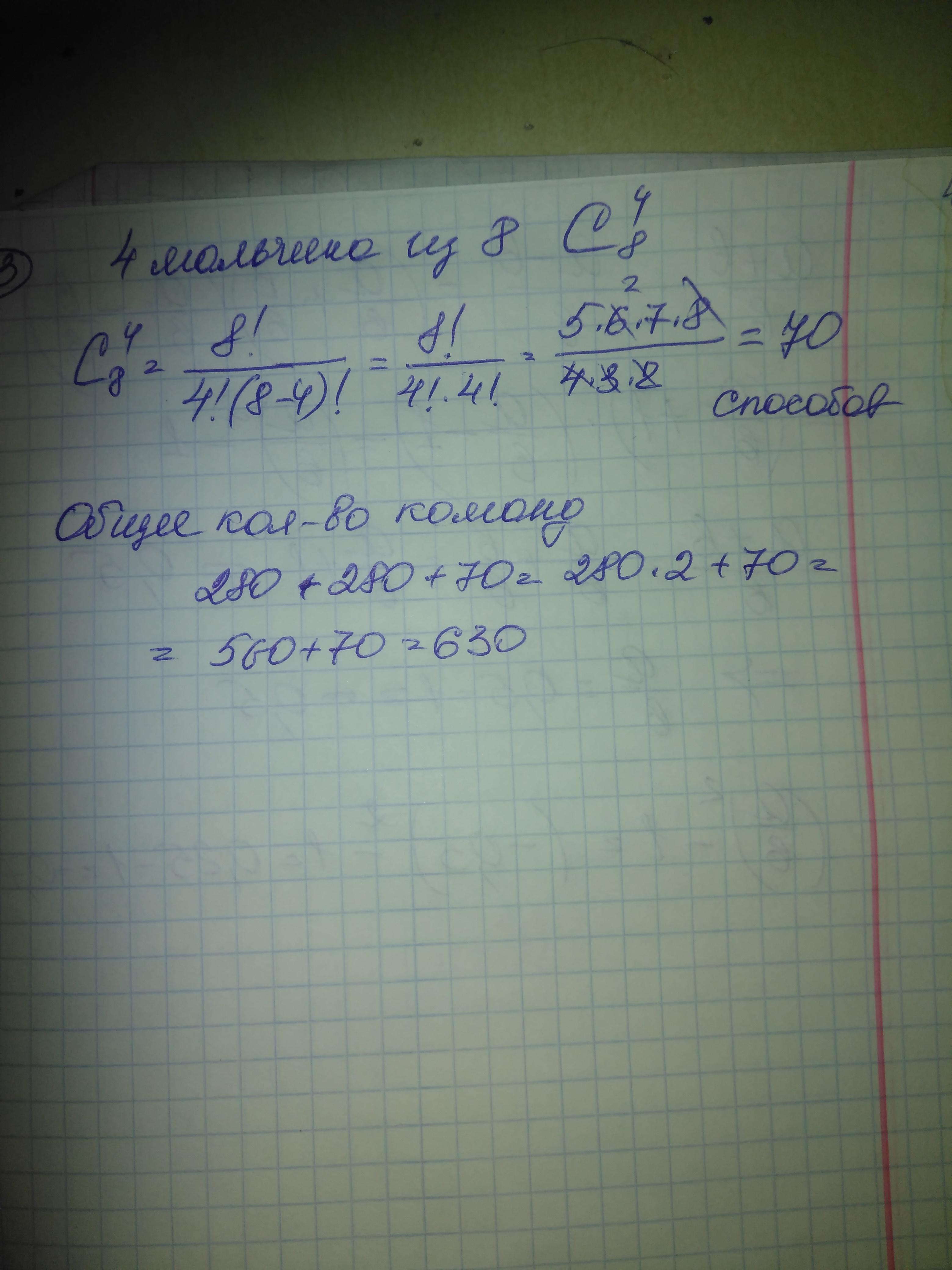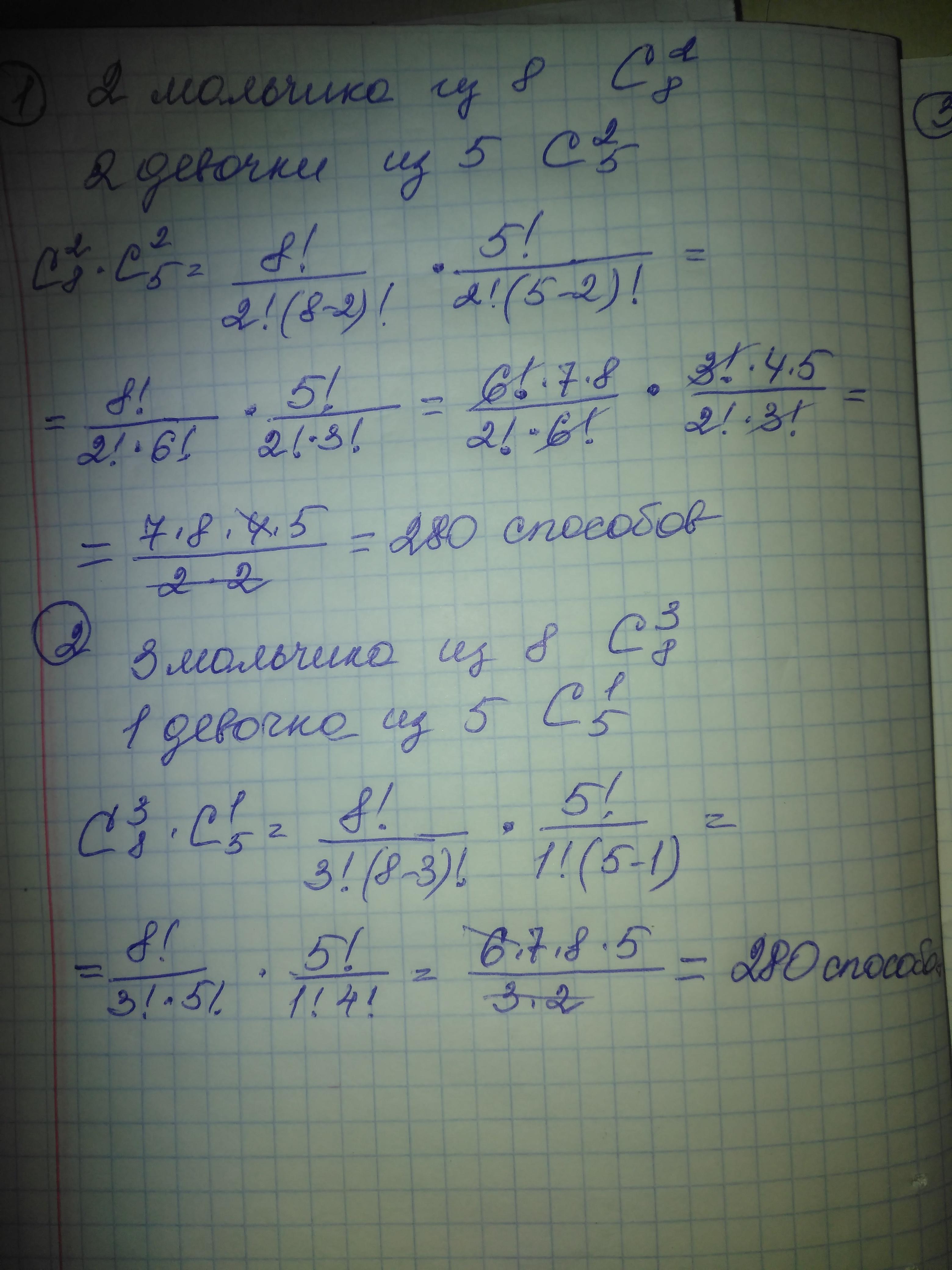 2. трёх мальчиков и одну девочку можно выбрать способами.