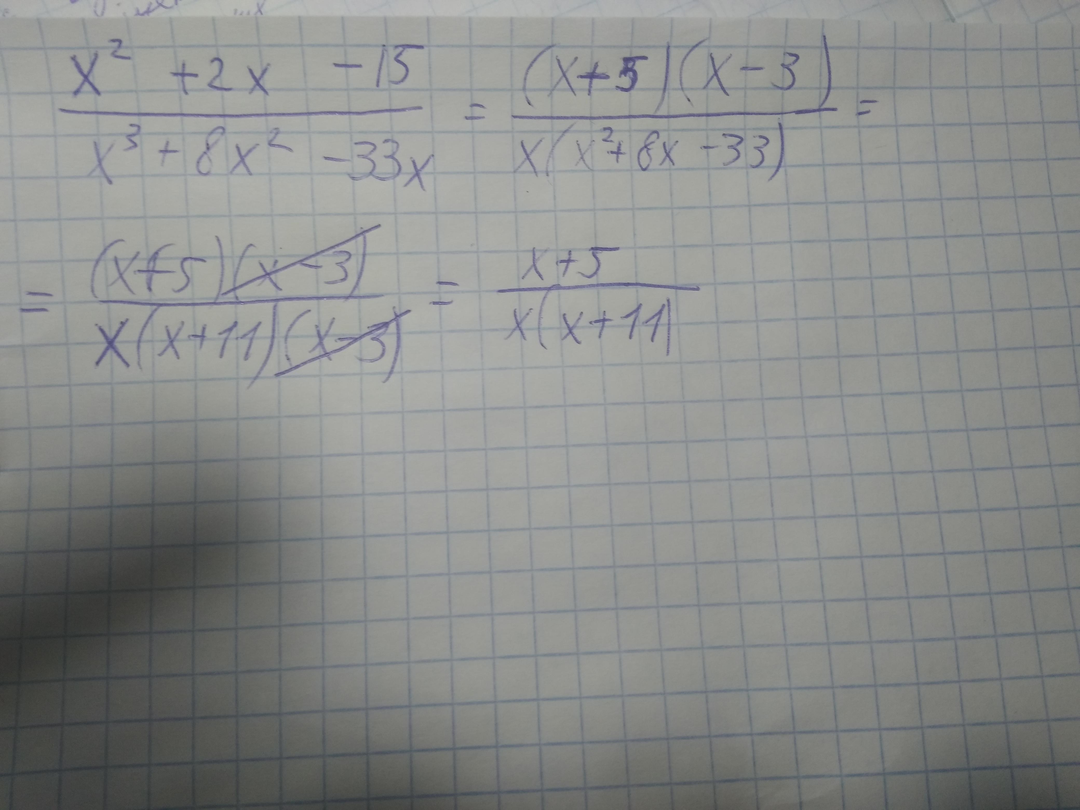 В знаменателе выносим на скобки х и так же как и в числителе по теореме Виета раскладываем многочлен в одночлен, а дальше скорачиваем.