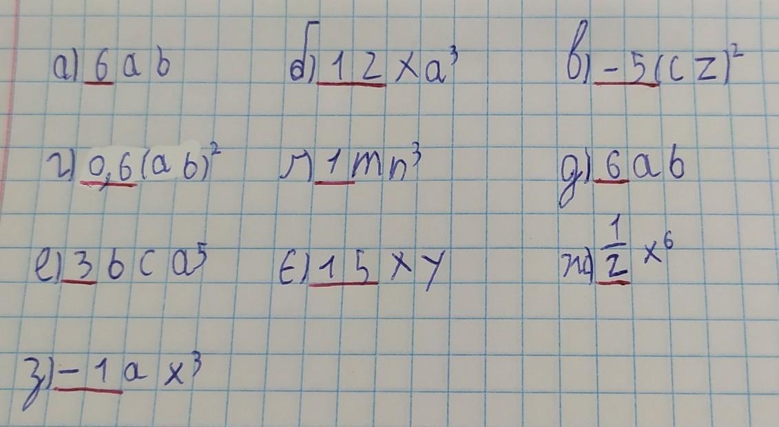На этой странице сайта вы найдете ответы на вопрос Запишіть одночлен у стандартному вигляді й підкресліть його коефіцієнт?, относящийся к категории Алгебра. Сложность вопроса соответствует базовым знаниям учеников студенческий. Для получения дополнительной информации найдите другие вопросы, относящимися к данной тематике, с помощью поисковой системы. Или сформулируйте новый вопрос: нажмите кнопку вверху страницы, и задайте нужный запрос с помощью ключевых слов, отвечающих вашим критериям. Общайтесь с посетителями страницы, обсуждайте тему. Возможно, их ответы помогут найти нужную информацию.
