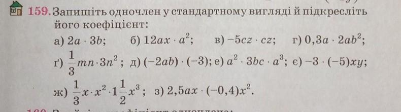 Зведіть одночлен до стандартного вигляду, вкажіть його коефієнт і степень1) 5m•2a • ( - 3b)2) - 7a • ( - 5a ²)?