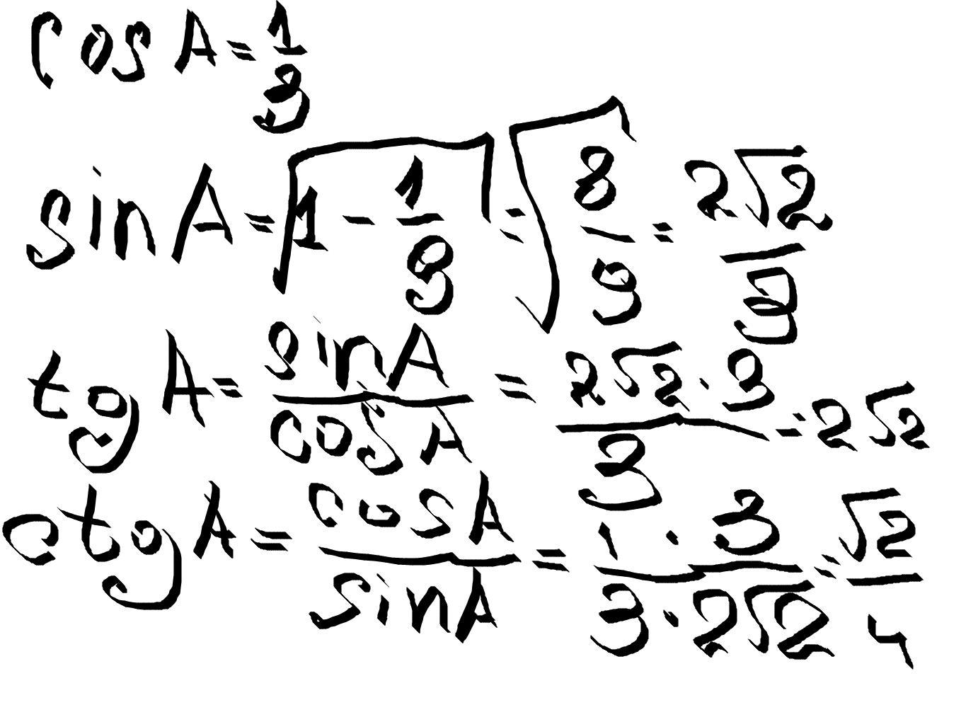 Найти sinA, tgA, ctgA.