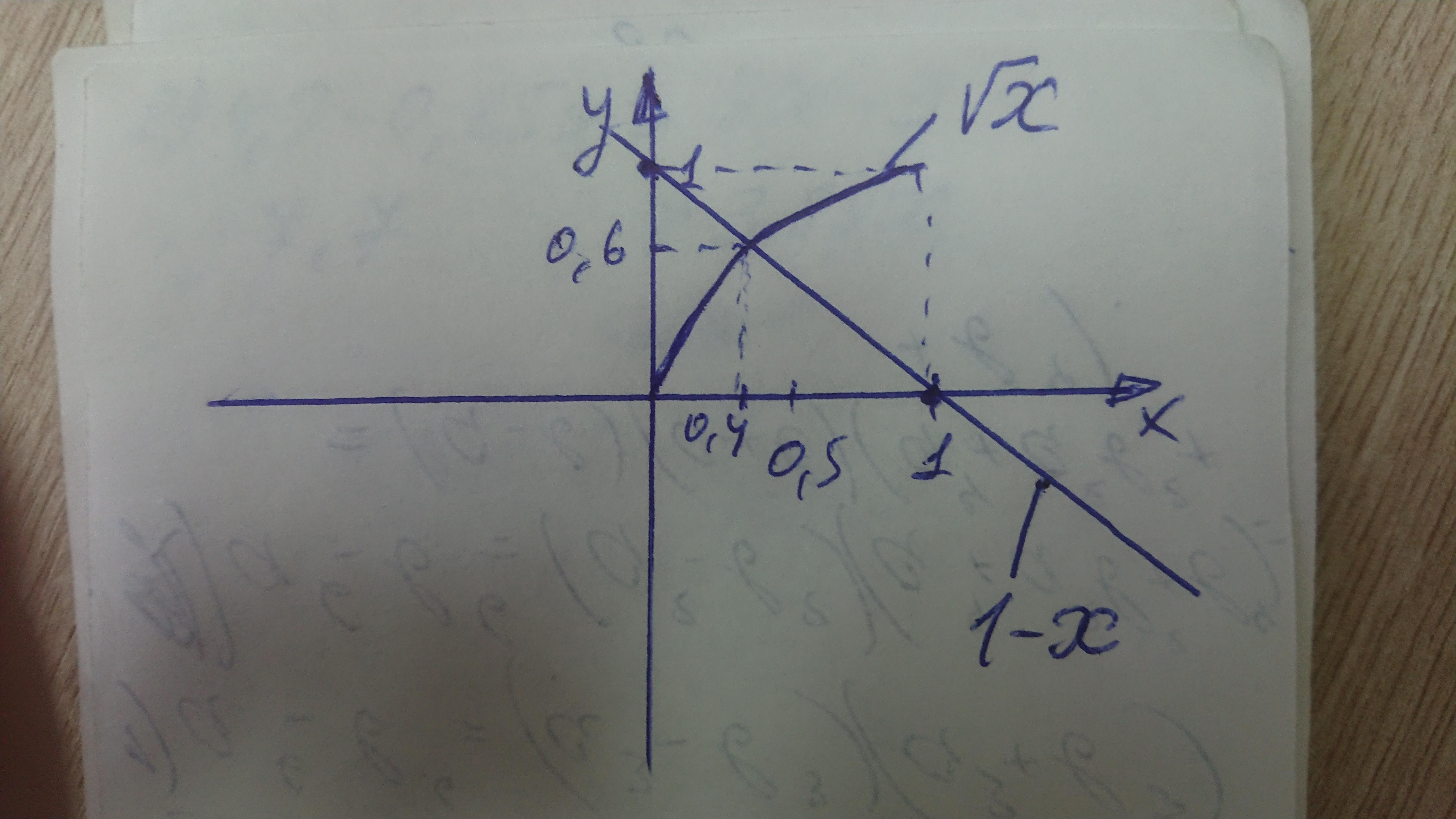 1 - x = корень из х решить графически уравнение .