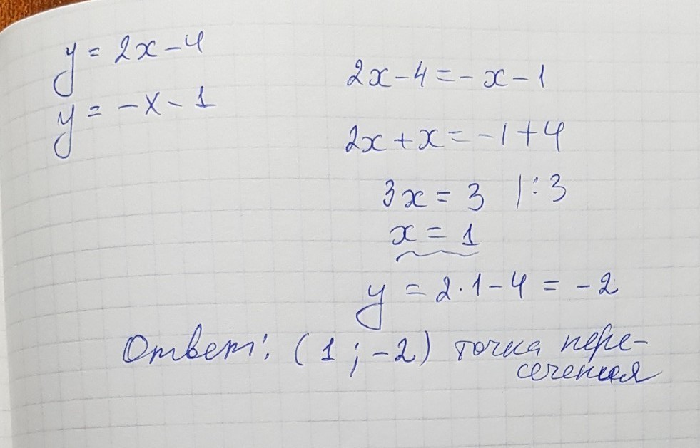 Не выполняя построений, найдите координаты точки пересечения графиков функций y = - 8x + 1 и y = 4x - 8.