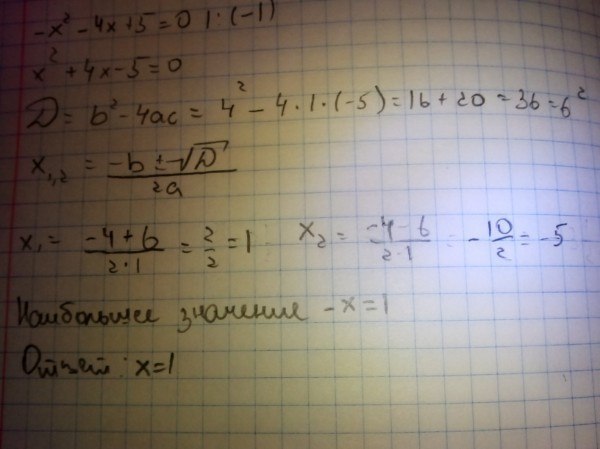 Найдите наибольшее значение выражения - x2 - 4x + 5 (x во второй степени).
