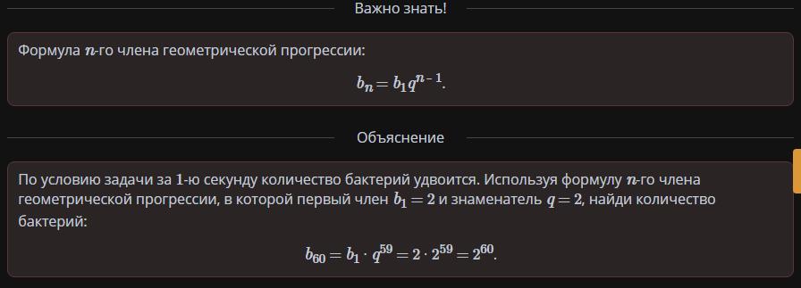 На этой странице сайта, в категории Алгебра размещен ответ на вопрос Бактерия делится на две бактерии каждую минуту?. По уровню сложности вопрос рассчитан на учащихся 10 - 11 классов. Чтобы получить дополнительную информацию по интересующей теме, воспользуйтесь автоматическим поиском в этой же категории, чтобы ознакомиться с ответами на похожие вопросы. В верхней части страницы расположена кнопка, с помощью которой можно сформулировать новый вопрос, который наиболее полно отвечает критериям поиска. Удобный интерфейс позволяет обсудить интересующую тему с посетителями в комментариях.