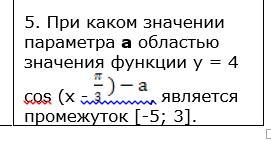При каком значении параметра а областью значения функции у = 4 cos (х - pi / 3 , является промежуток [ - 5 ; 3].