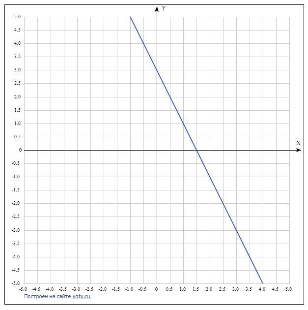 4)Для решения приравниваем левые части двух уравнений ( найдём абсциссу точки пересечения) - 1, 5х + 4 = 2х - 3 ; - 1, 5х - 2х = - 3 - 4 ; - 3, 5х = - 7 :