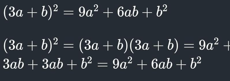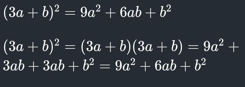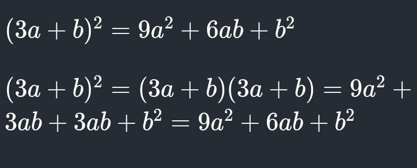 (3a + b)² = 9a² + 6ab + b².