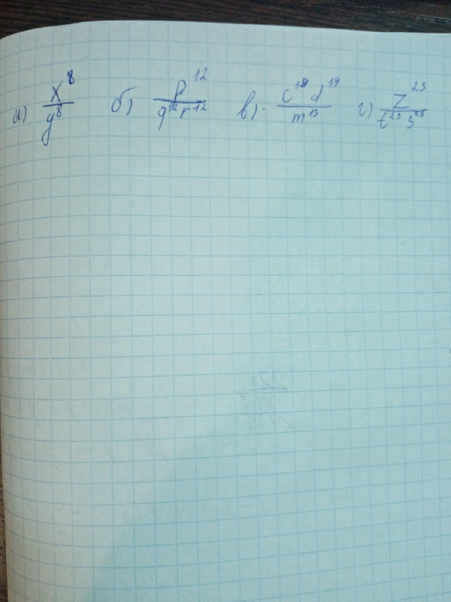 а) по свойству степеней ответ будет х ^ 8 / y ^ 8