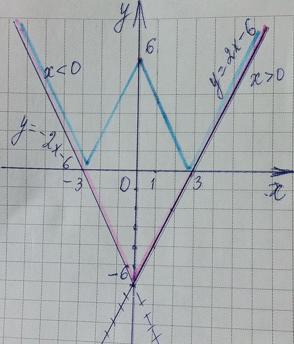 График у = 2·| x | - 6 на рисунке сиреневым цветом.